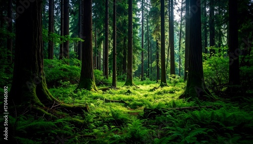 Fototapeta premium Lush forest floor bathed in sunlight (1)