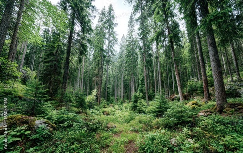 Fototapeta premium Lush forest floor, towering trees