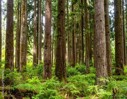 © pradnyana, Obraz premium Lush forest floor with towering trees