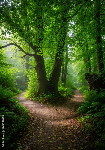 Obraz premium Lush forest path fork