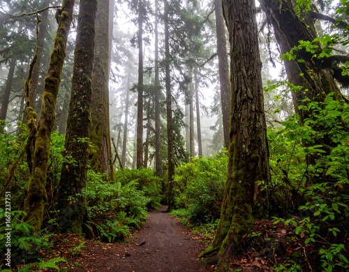 Obraz premium Lush forest path in misty light