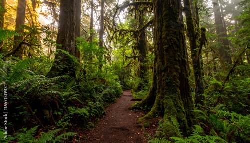 © Athayya, Obraz premium Lush forest path through mossy trees