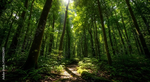 © egavirgian art, Obraz premium Lush Forest Path with Sunlight