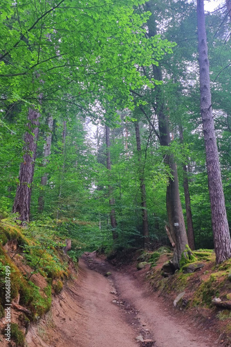 © Dzmitry, Fototapeta premium Lush Forest Pathway in Summer for Nature Exploration and Tranquil Retreats