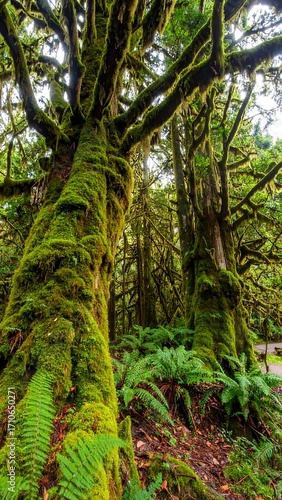 Obraz premium Lush forest scene with moss-covered trees