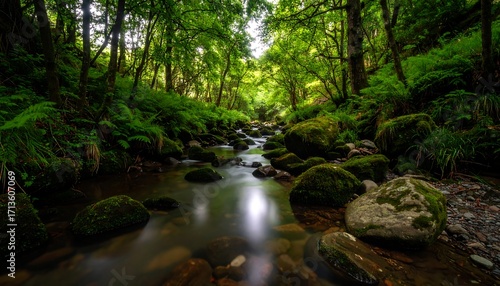© lan, Fototapeta premium Lush forest stream