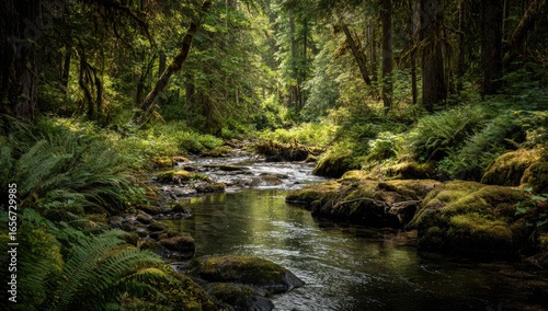 Obraz premium Lush forest stream scene