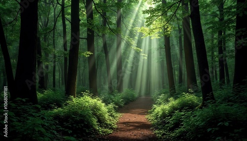 © Mityarko, Obraz premium Lush Forest Under Spotlight