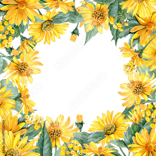 Obraz premium Lush frame in yellow colors with Heliopsis and Tansy