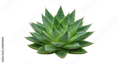 Fototapeta premium Lush green aloe vera plant showcasing vibrant leaves against a clean backdrop isolated on white background