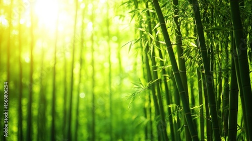 Fototapeta premium Lush green bamboo forest bathed in sunlight