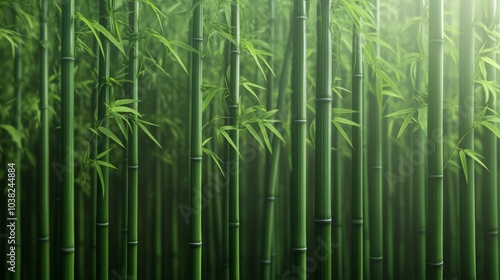 Fototapeta premium Lush green bamboo forest, vibrant foliage, natural light filtering through...
