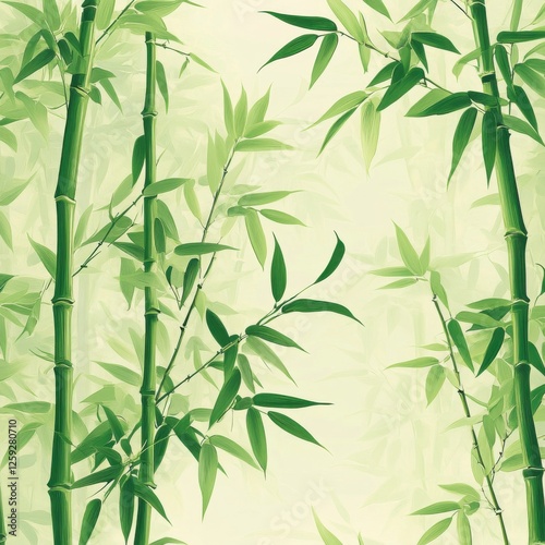 © tanawatbig, Fototapeta premium Lush Green Bamboo Forest with Delicate Leaves and Soft Background