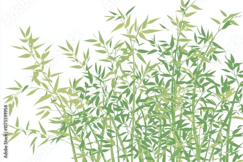 © Starkreal, Naklejka premium Lush Green Bamboo Leaves Silhouetted Against a Soft White Background, Perfect for Nature Themes and Minimalist Design Projects