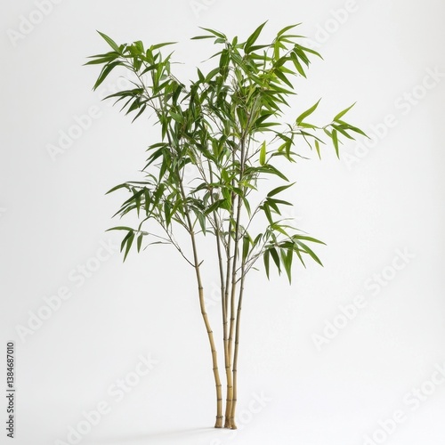 © Namdang, Fototapeta premium Lush Green Bamboo Plant Against Simple White Background