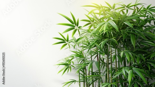 Fototapeta premium Lush green bamboo plants against a light background, symbolizing tranquility...