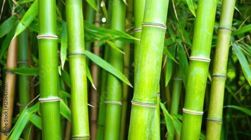 © milenialdesastudio, Obraz premium Lush green bamboo stalks and leaves.