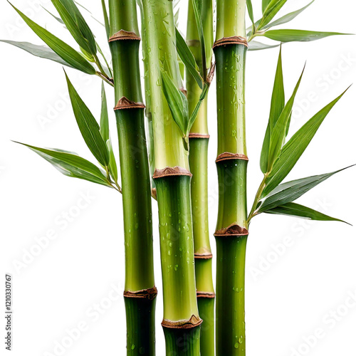 © Awan Rustiawan , Obraz premium Lush green bamboo stalks with dew drops, vibrant leaves against a black background. Perfect for spa, nature, and tranquility themes.