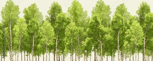 Fototapeta premium Lush Green Birch Forest Springtime Nature Scene Tranquil Woodland Panorama