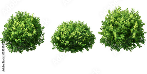 © Creative Transparent, Fototapeta premium Lush green bushes arranged in a row, showcasing vibrant foliage against a transparent background, ideal for landscaping designs