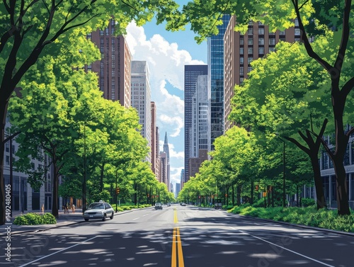 Obraz premium Lush Green City Street Under Partly Sunny Sky