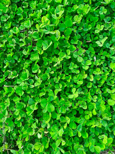 Obraz premium lush green clover leaf ground cover vertical texture for nature background, eco design, organic pattern, garden visuals symbolizing luck for st. patrick's
