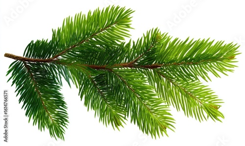 © Neon, Naklejka premium Lush green evergreen branch isolated on white