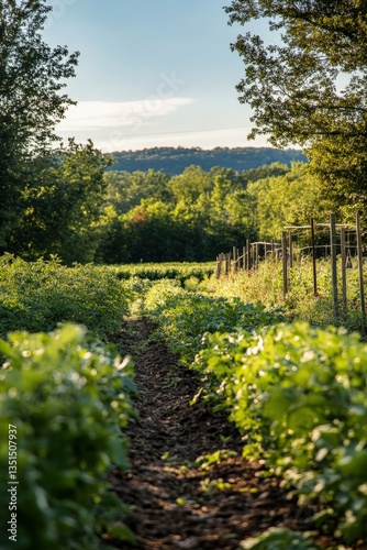 © BrandwayArt, Fototapeta premium Lush green farm path at sunset
