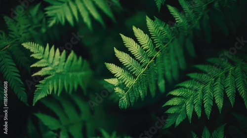 Obraz premium Lush green fern fronds in a dense rainforest creating a vibrant natural...