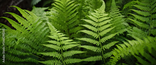 Obraz premium Lush Green Ferns in a Forest Setting Nature's Vibrant Greenery