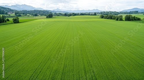 Obraz premium Lush green field, mountain view, rural landscape, farming