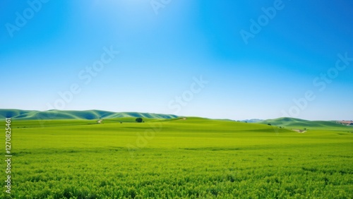 Naklejka premium Lush Green Field, Rolling Hills, Blue Sky - Nature Photography: Th.
