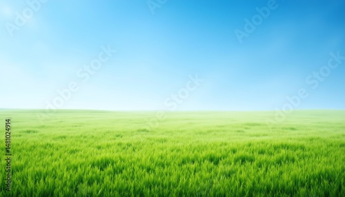 © KAMAPAN, Obraz premium Lush green field under a clear blue sky.