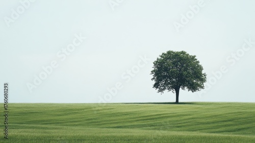Fototapeta premium Lush green field with a solitary tree under a bright sky during midday