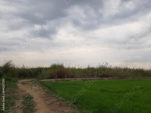Obraz premium Lush Green Fields Under a Cloudy Sky