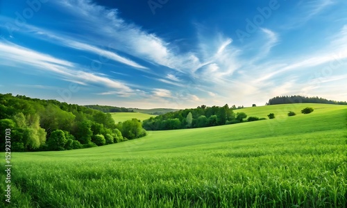 © Gralysell, Obraz premium Lush Green Fields Under a Majestic Sky