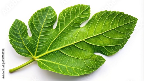 © Adisorn, Obraz premium Lush Green Fig Tree Leaf Isolated on a White Background Highlighting Its Unique Textures and Patterns