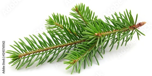 Naklejka premium Lush Green Fir Branch Close-Up Composition, Isolated on White Background