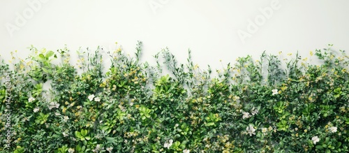 Fototapeta premium Lush Green Floral Wall: A Serene Garden Panorama