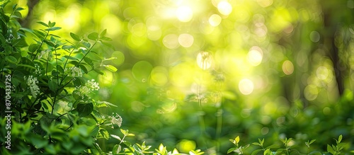 Obraz premium Lush green foliage and flowers in a grove create a blurred background in the copy space image.
