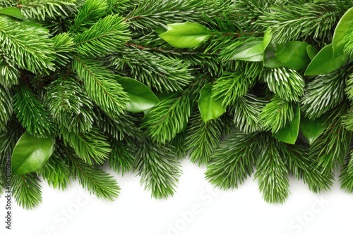 © Leo Rohmann, Naklejka premium Lush green foliage and vibrant needles of evergreen plants beautifully layered to create a natural backdrop symbolizing growth and tranquility captured with clarity