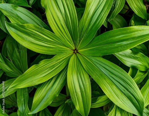 © aditya, Obraz premium Lush green foliage arranged in a radial pattern, showcasing vibrant texture and color