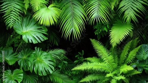 Fototapeta premium Lush green foliage creating a vibrant tropical atmosphere.