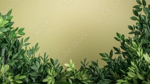 © Narongsag, Naklejka premium Lush Green Foliage Frame Perfect for Spring or Summer Designs Nature Background Botanical Illustration