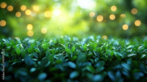 © Fenny, Obraz premium Lush green foliage with bokeh lights.