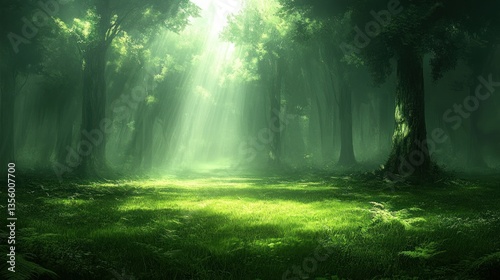 © Ika, Obraz premium Lush green forest bathed in sunlight