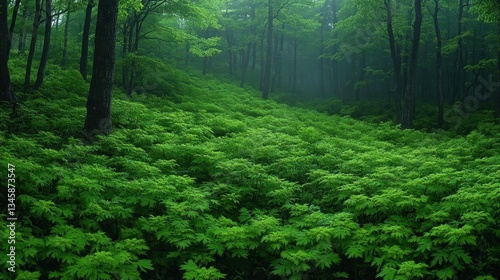© luluk, Fototapeta premium Lush Green Forest Canopy Nature Scene