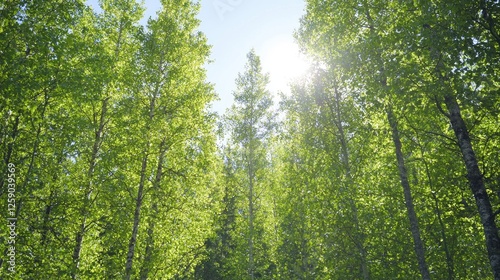 Fototapeta premium Lush green forest canopy sunlight