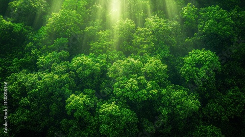 Obraz premium Lush green forest canopy, sunlight filtering through