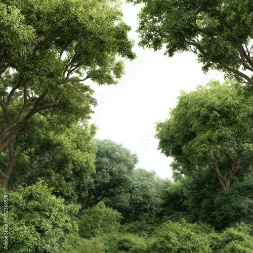 Obraz premium Lush green forest canopy view on white background